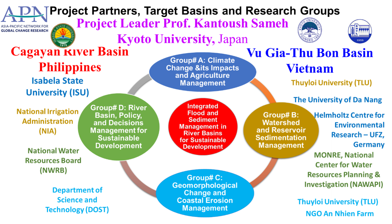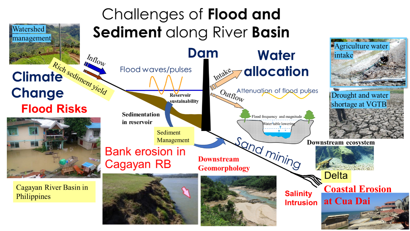 Food security, water supply, river environments, and community resilience along river basins are threatened by both human and natural drivers. The connectivity of water and sediments along a river basin - in Japan, Vietnam, the Philippines, Africa, and other parts of the world- is being altered by human interventions such as dam construction, irrigation expansion, deforestation, sand mining, and land-use change. In areas such as the Vietnamese Mekong Delta (VMD), for example, subsidence and shrinkage add additional layers of vulnerability.